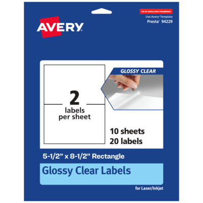 Avery Laser/Inkjet Multipurpose Labels, 8.5" x ", Glossy Clear, 20/Pack (94229)
