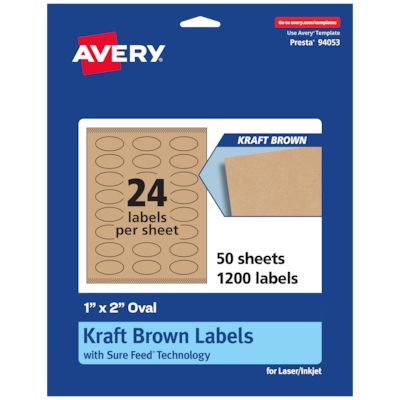 Easily add a rustic finish to crafts, gifts and products with Avery 1" x 2" Kraft Brown Oval Labels. Made with a kraft brown paper material that’s smooth to the touch, Avery kraft brown labels add a natural and handcrafted look to any project. This charming kraft brown material is perfect for adding a little homespun flair to labels for food containers, mason jar labels, canning labels, ingredient labels, soap jar labels and more. Avery oval labels are carefully constructed and developed with patented features to provide the best results for every project. Sure Feed technology prevents jams or smudges by creating a more reliable feed through your printer. The print-to-the-edge layout lets you print beautiful full-bleed designs that fill each blank sticker to the edge. The patented Easy Peel label design makes these labels easy to peel and quick to apply. Just bend the label sheet, peel off your labels and fold the sheet back flat. The strong permanent label adhesive makes sure that your labels stick and stay to a variety of surfaces without peeling, curling or falling off. Easily customize labels with your own designs, art, symbols and messaging by using the label templates and designs on the Avery website. The intuitive tools make it easy to add your personal touch to any project.