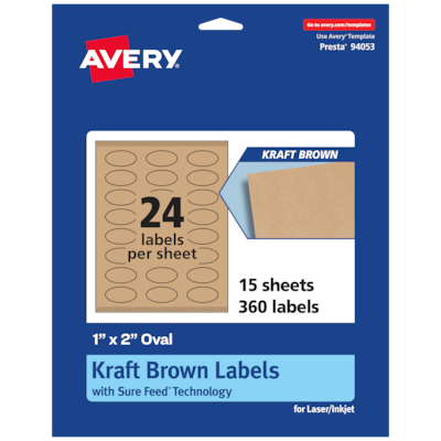 Easily add a rustic finish to crafts, gifts and products with Avery 1" x 2" Kraft Brown Oval Labels. Made with a kraft brown paper material that’s smooth to the touch, Avery kraft brown labels add a natural and handcrafted look to any project. This charming kraft brown material is perfect for adding a little homespun flair to labels for food containers, mason jar labels, canning labels, ingredient labels, soap jar labels and more. Avery oval labels are carefully constructed and developed with patented features to provide the best results for every project. Sure Feed technology prevents jams or smudges by creating a more reliable feed through your printer. The print-to-the-edge layout lets you print beautiful full-bleed designs that fill each blank sticker to the edge. The patented Easy Peel label design makes these labels easy to peel and quick to apply. Just bend the label sheet, peel off your labels and fold the sheet back flat. The strong permanent label adhesive makes sure that your labels stick and stay to a variety of surfaces without peeling, curling or falling off. Easily customize labels with your own designs, art, symbols and messaging by using the label templates and designs on the Avery website. The intuitive tools make it easy to add your personal touch to any project.