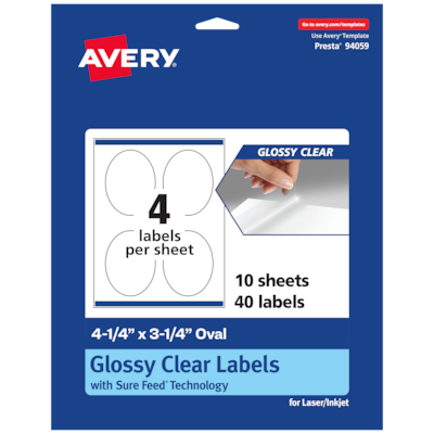 Order Avery Laser/Inkjet Multipurpose Oval Labels, 3.25" Dia, Glossy Clear, 40/Pack (94059) today at Quill.com and get fast shipping. Stack coupons to get free gifts & extra discounts!