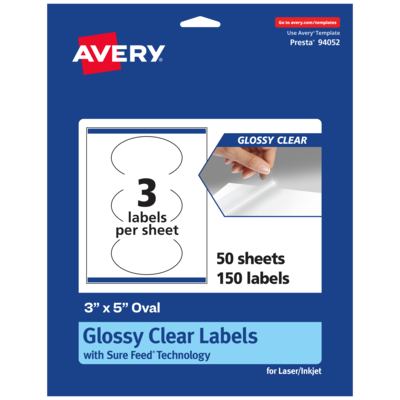 Avery Laser/Inkjet Multipurpose Oval Labels, 5" Dia, Glossy Clear, 150/Box (94052)