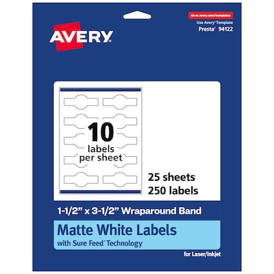 Avery Laser/Inkjet Multipurpose Wraparound Labels, 1.5" x 3.5", White, 250 Labels/Pack (94122)