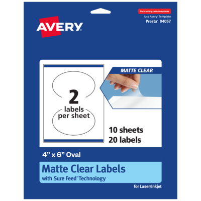 Avery Laser/Inkjet Oval Multipurpose Labels, 4" x 6", Clear, 20/Pack (94057)