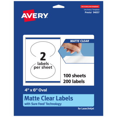 Avery Laser/Inkjet Oval Multipurpose Labels, 4" x 6", Clear, 200/Box (94057)