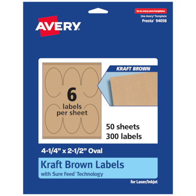 Avery Laser/Inkjet Oval Multipurpose Labels, 4.25" x 2.5", Kraft Brown, 300 Labels/Box ( 94058)