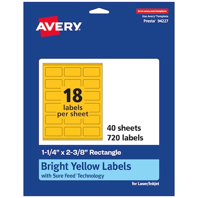 Avery Laser/Inkjet Rectangle Multipurpose Labels, 1-1/4" x 2-3/8", Bright Yellow, 720/Pack (94227)