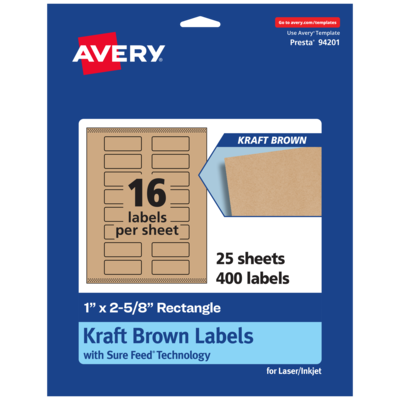 Avery Laser/Inkjet Rectangle Multipurpose Labels, 1" x 2-5/8", Kraft Brown, 400 Labels/Pack ( 94201)
