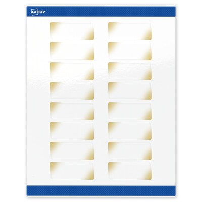 Add an elevated, professional touch to your branding or event with Avery(R) Rectangle 1" x 2-5/8" Glossy White Labels featuring the Gold Blush design. These premium labels are pre-printed with elegant, metallic gold accents that standard desktop printers simply can't replicate, giving your business or event an instant upgrade. With a design already pre-printed, you can easily customize the blank space while using less ink—just personalize and print. For a cohesive look, pair these labels with other Avery(R) products in the same design collection. Featuring convenient Pop-Up Edge technology for faster peeling, these permanent customizable labels apply smoothly and stay securely in place. The glossy white finish reflects light for vivid color and detail, creating a premium, polished appearance. Compatible with laser and inkjet printers, these labels make it easy to print personalized labels with professional results. Built-in Sure Feed(R) technology is designed to provide a more reliable feed through your printer, helping to reduce misalignments, printer jams, and wasted product. Search Avery Presta(R) Template S00-EWB, and use Avery(R) Design & Print to add your own logo, text, and artwork. Our easy-to-use design software lets you add your own personal touch while enjoying the consistency of the stunning, pre-printed design. Try it out on the Avery website today.