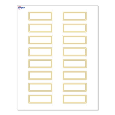 Pre-printed with beautiful designs, Avery Rectangle 1" x 2-5/8" Matte White Labels with the Multi-Lined Gold Border Design help save ink and also elevate your branding and events. Pre-designed and printed with metallic gold ink with high-quality printers, these shiny patterns will definitely stand out and are not easily achieved with desktop printers. These pre-printed embellishments also help save your printer ink so that you only need to print your customizable information. Mix and match these labels with other Avery products from the same collection that have the same pre-printed design to create a cohesive look. Featuring the helpful Pop-Up Edge technology to help lift and peel labels quickly, these permanent-adhesive labels are great for product labels, care instructions labels, ingredient labels, and more. The versatile matte white material is a great solution for any project. Compatible with both laser and inkjet printers, these labels make it a breeze to personalize them with your own information with a desktop printer while still looking professional. Sure Feed technology reduces printer jams by creating a more reliable feed through your printer. Customize gold wedding labels, luxury holiday event labels, premium event labels, and festive gold labels with your own logos, text, and designs by searching for the Presta ID S00-D16 and using Avery Design & Print on the Avery site. Whether you’re a business owner that wants to add more flair to products, an event planner looking to elevate an event, or a teacher looking to step up class projects, Avery labels make it easy to translate your designs into reality.