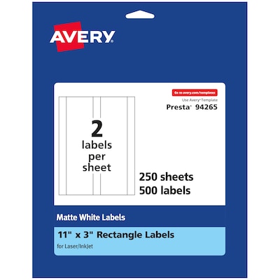 Avery Laser/Inkjet Rectangle Multipurpose Labels, 11" x 3", White, 500 Labels/Box (94265)