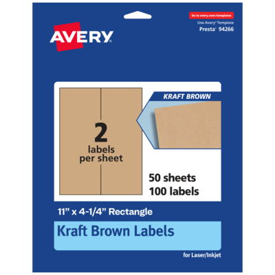 Avery Laser/Inkjet Rectangle Multipurpose Labels, 11" x 4.25", Kraft Brown, 100 Labels/Box ( 94266)