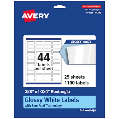 Avery Laser/Inkjet Rectangle Multipurpose Labels, 1.75" x 0.6667", Glossy White, 1100/Pack (94209)