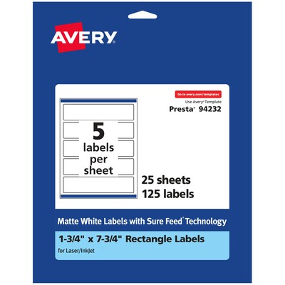 Avery Laser/Inkjet Rectangle Multipurpose Labels, 1.75" x 7.75", White, 125 Labels/Pack (94232)