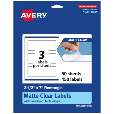 Avery Laser/Inkjet Rectangle Multipurpose Labels, 2-1/2" x 7", Clear, 150/Box (94247)