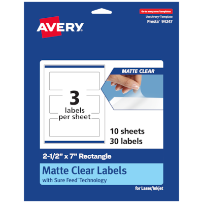 Avery Laser/Inkjet Rectangle Multipurpose Labels, 2-1/2" x 7", Clear, 30/Pack (94247)