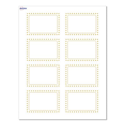 Pre-printed with beautiful designs, Avery Rectangle 2-1/3" x 3-3/8" Matte White Name Tags with the Gold Border with Gold Dots Design help save ink and also elevate your branding and events. *