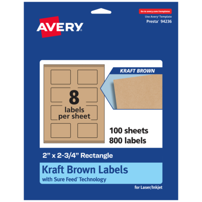 Avery Laser/Inkjet Rectangle Multipurpose Labels, 2" x 2.75", Kraft Brown, 800 Labels/Box ( 94236)