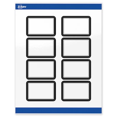 Pre-printed with beautiful designs, Avery Rectangle 2" x 3" Glossy White Labels with the Double Black Border design help save ink and also elevate your branding and events. Pre-designed and printed with high-quality printers, these eye-catching premium designs can’t be easily achieved with standard desktop printers. Mix and match these labels with other Avery cards, tags, and name badges from the same collection that have the same pre-printed design to create a cohesive look. Featuring the helpful Pop-Up Edge technology to help lift and peel labels quickly, these permanent-adhesive labels are great for food labels for containers, logo labels, product labels, and more. Made with a glossy white material, the reflective finish adds a professional, photo-quality look to any project. Compatible with both laser and inkjet printers, these labels make it a breeze to personalize them with your own information with a desktop printer while still looking professional. Avery premium labels are carefully constructed with beneficial features to provide the best results and allow your brand to stand out. Sure Feed technology reduces printer jams by creating a more reliable feed through your printer. Easily customize skincare labels, bath & beauty labels, qr code labels, wax melt labels, care instruction labels, stickers, holiday & wedding labels, and more with your own logos, text, and designs by searching for the Presta ID S00-DKZ and using the templates and tools in Avery Design & Print on the Avery site. Whether you’re a business owner that wants to add more flair to products, an event planner looking to elevate an event, or a teacher looking to step up class projects, Avery labels make it easy to translate your designs into reality.