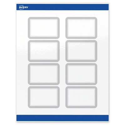 Create a lasting impression with easy-to-customize Avery(R) Labels that feature a stunning, pre-printed design. Elevate your branding or event with Avery(R) 2" x 3" Glossy White Shipping Labels featuring the Silver Mirror Metallic design. These premium, printable labels feature a pre-printed border with elegant metallic silver accents, delivering a look no standard printer can match. With a pre-printed design, you can customize the blank space while using less ink. For a cohesive look, pair these labels with other Avery(R) products in the same design collection. Featuring convenient Pop-Up Edge technology for faster peeling, these permanent customizable labels apply smoothly and stay securely in place. The glossy white finish reflects light for vivid color and detail, creating a premium, polished appearance. Built-in Sure Feed technology helps reduce misalignments and printer jams by creating a more reliable feed through your printer. Easily design and print wedding stickers, QR code stickers, thank you labels, and more using Avery Presta(R)(R) Template S00-F38.