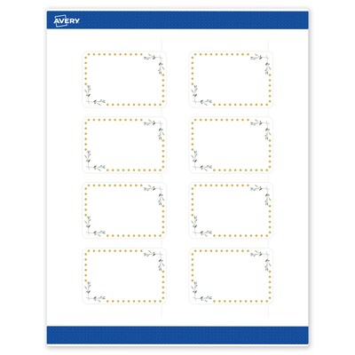 Pre-printed with beautiful designs, Avery Rectangle 2" x 3" Matte White Labels with the Gold Dots with Green Florals design help save ink and also elevate your branding and events. Pre-designed and printed with shiny matte gold ink with high-quality printers, these patterns will definitely stand out and are not easily achieved with desktop printers. Mix and match these labels with other Avery cards, tags, and name badges from the same collection that have the same pre-printed design to create a cohesive look. Featuring the helpful Pop-Up Edge technology to help lift and peel labels quickly, these permanent-adhesive labels are great for food labels for containers, logo labels, product labels, and more. The versatile matte white material is a great solution for any project. Compatible with both laser and inkjet printers, these labels make it a breeze to personalize them with your own information with a desktop printer while still looking professional. Avery premium labels are carefully constructed with beneficial features to provide the best results and allow your brand to stand out. Sure Feed technology reduces printer jams by creating a more reliable feed through your printer. Easily customize gold wedding labels, luxury holiday event labels, premium event labels, festive gold labels, and more with your own logos, text, and designs by searching for the Presta ID S00-DN2 and using the templates and tools in Avery Design & Print on the Avery site. Whether you’re a business owner that wants to add more flair to products, an event planner looking to elevate an event, or a teacher looking to step up class projects, Avery labels make it easy to translate your designs into reality.