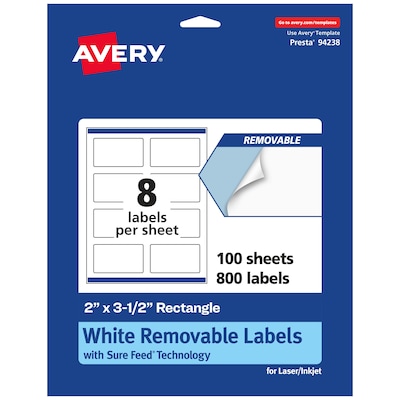 Avery Laser/Inkjet Rectangle Multipurpose Labels, 2" x 3.5", White, 800 Labels/Box (94238)