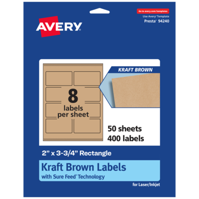 Avery Laser/Inkjet Rectangle Multipurpose Labels, 2" x 3.75", Kraft Brown, 400 Labels/Box ( 94240)