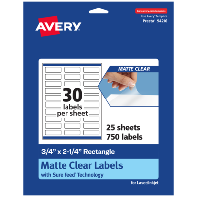 Avery Laser/Inkjet Rectangle Multipurpose Labels, 3/4" x 2-1/4", Clear, 750/Pack (94216)