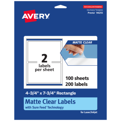 Avery Laser/Inkjet Rectangle Multipurpose Labels, 4-3/4" x 7-3/4", Clear, 200/Box (94255)