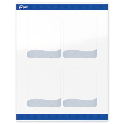 Create a lasting impression with easy-to-customize Avery(R) Labels that feature a stunning, pre-printed design. Add an elevated, professional touch to your branding or event with Avery(R) Rectangle 4" x 3-1/3" Glossy White Labels featuring the Blue Waves design. These premium labels are pre-printed with a vivid, high-resolution design, giving your business or event an instant upgrade. With a design already pre-printed, you can easily customize the blank space while using less ink—just personalize and print. For a cohesive look, pair these labels with other Avery(R) products in the same design collection. Featuring convenient Pop-Up Edge technology for faster peeling, these permanent customizable labels apply smoothly and stay securely in place. The glossy white finish reflects light for vivid color and detail, creating a premium, polished appearance. Compatible with laser and inkjet printers, these labels make it easy to print personalized labels with professional results. Built-in Sure Feed(R) technology is designed to provide a more reliable feed through your printer, helping to reduce misalignments, printer jams, and wasted product. Search Avery Presta(R) Template S00-ETY, and use Avery(R) Design & Print to add your own logo, text, and artwork. Our easy-to-use design software lets you add your own personal touch while enjoying the consistency of the stunning, pre-printed design. Try it out on the Avery website today.