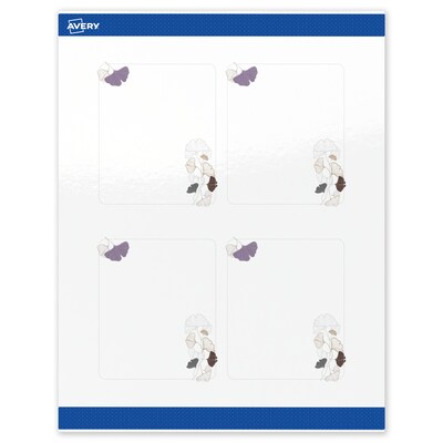 Create a lasting impression with easy-to-customize Avery(R) Labels that feature a stunning, pre-printed design. Add an elevated touch to branding and events with Avery(R) Rectangle 4" x 3-1/3" Glossy White Labels featuring the Silver Metallic with Gingko Leaves design. Upgrade your business or event with these premium, printable labels that feature a pre-printed border with elegant metallic silver accents, delivering a look no standard printer can match. With a design already pre-printed, you can easily customize the blank space while using less ink—just personalize and print. For a cohesive look, pair these labels with other Avery(R) products in the same design collection. Featuring convenient Pop-Up Edge technology for faster peeling, these permanent customizable labels apply smoothly and stay securely in place. The glossy white finish reflects light for vivid color and detail, creating a premium, polished appearance. Built-in Sure Feed technology helps reduce misalignments and printer jams by creating a more reliable feed through your printer. Compatible with laser and inkjet printers, these labels make it easy to print wedding labels, food labels, QR code stickers, and more with professional results. Just use Avery(R) Design & Print and search Avery Presta(R) Template S00-F46 to add your own logo, text, and artwork for a personal touch. Enjoy effortless customization with results that look truly professional.
