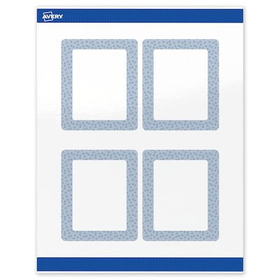 Add an elevated touch to branding and events with Avery(R) Rectangle 4" x 3-1/3" Glossy White Labels featuring the Blue with Clear Polka Dots design. Upgrade your business or event with these premium, printable labels that feature a pre-printed border with an eye-catching gloss accent overlay, delivering a look no standard printer can match. With a design already pre-printed, you can easily customize the blank space while using less ink—just personalize and print. For a cohesive look, pair these labels with other Avery(R) products in the same design collection. Featuring convenient Pop-Up Edge technology for faster peeling, these permanent customizable labels apply smoothly and stay securely in place. The glossy white finish reflects light for vivid color and detail, creating a premium, polished appearance. Built-in Sure Feed technology helps reduce misalignments and printer jams by creating a more reliable feed through your printer. Compatible with laser and inkjet printers, these labels make it easy to print wedding labels, food labels, QR code stickers, and more with professional results. Just use Avery(R) Design & Print and search Avery Presta(R) Template S00-F8J to add your own logo, text, and artwork for a personal touch. Enjoy effortless customization with results that look truly professional.