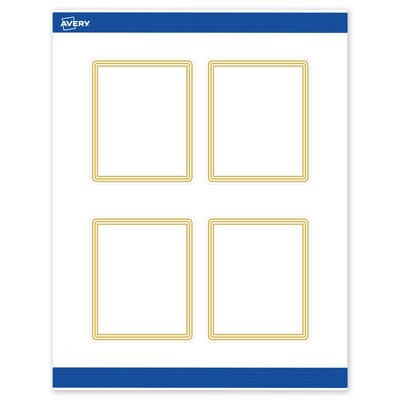 Save ink and time with Avery products with pre-printed designs. Pre-printed with beautiful designs, Avery Rectangle 4" x 3-1/3" Matte White Labels with the Gold Multi-Lined Border design help save ink and also elevate your branding and events. Pre-designed and printed with shiny matte gold ink with high-quality printers, these patterns will definitely stand out and are not easily achieved with desktop printers. Mix and match these labels with other Avery cards, tags, and name badges from the same collection that have the same pre-printed design to create a cohesive look. Featuring the helpful Pop-Up Edge technology to help lift and peel labels quickly, these permanent-adhesive labels are great for food labels for containers, logo labels, product labels, and more. The versatile matte white material is a great solution for any project. Compatible with both laser and inkjet printers, these labels make it a breeze to personalize them with your own information with a desktop printer while still looking professional. Avery premium labels are carefully constructed with beneficial features to provide the best results and allow your brand to stand out. Sure Feed technology reduces printer jams by creating a more reliable feed through your printer. Easily customize gold wedding labels, luxury holiday event labels, premium event labels, festive gold labels, and more with your own logos, text, and designs by searching for the Presta ID S00-DHG and using the templates and tools in Avery Design & Print on the Avery site. Whether you’re a business owner that wants to add more flair to products, an event planner looking to elevate an event, or a teacher looking to step up class projects, Avery labels make it easy to translate your designs into reality.