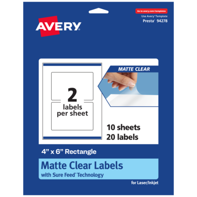 Order Avery Laser/Inkjet Rectangle Multipurpose Labels, 4" x 6", Clear, 20/Pack (94278) today at Quill.com and get fast shipping. Stack coupons to get free gifts & extra discounts!