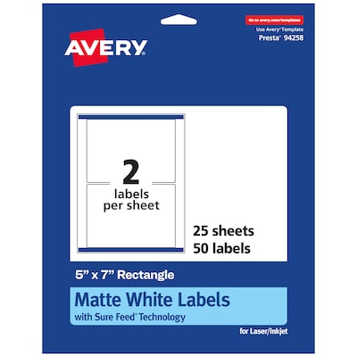 Avery Laser/Inkjet Rectangle Multipurpose Labels, 5" x 7", White, 50 Labels/Pack (94258)