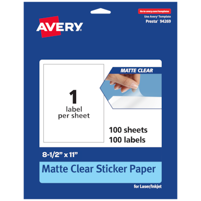 Create frosted clear sticker sheets, stickers for Cricut and Silhouette cutting machines, mailing labels and product labels, and more with Avery 8-1/2" x 11" Matte Clear Rectangle Labels. The soft, translucent material of Avery Clear Labels is perfect for creating clear labels that blend seamlessly into lighter-colored objects and surfaces. The slightly frosted appearance also helps provide contrast to make sure your print stays legible. Avery rectangle labels are carefully constructed with patented features to provide the best results. The strong permanent label adhesive makes sure that your labels stick and stay to a variety of surfaces without peeling, curling or falling off. Easily customize labels with your own designs, art, symbols, and messaging by using the label templates and designs on the Avery website.