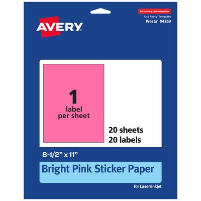 Avery Laser/Inkjet Rectangle Multipurpose Labels, 8.5" x 11", Bright Pink, 20/Pack (94269)