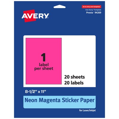 Avery Laser/Inkjet Rectangle Multipurpose Labels, 8.5" x 11", Neon Magenta, 20/Pack (94269)