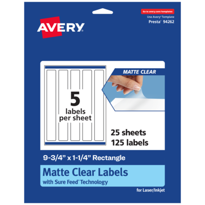 Avery Laser/Inkjet Rectangle Multipurpose Labels, 9-3/4" x 1-1/4", Clear, 125/Pack (94262)