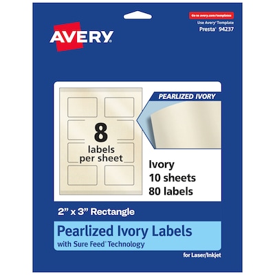 Avery Laser/Inkjet Rectangle Pearlized Labels, 2" x 3", Ivory, 80 Labels/Pack (94237)