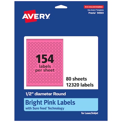 Order Avery Laser/Inkjet Round Multipurpose Labels, 0.5" Dia, Bright Pink, 12320/Box (94636) today at Quill.com and get fast shipping. Stack coupons to get free gifts & extra discounts!