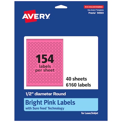 Avery Laser/Inkjet Round Multipurpose Labels, 0.5" Dia., Bright Pink, 6160/Pack (94503)