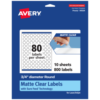 Avery Laser/Inkjet Round Multipurpose Labels, 0.75" Dia., Clear, 800 Labels/Pack (94504)