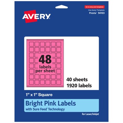 Avery Laser/Inkjet Square Multipurpose Labels, 1" x 1", Bright Pink, 1920/Pack (94103)