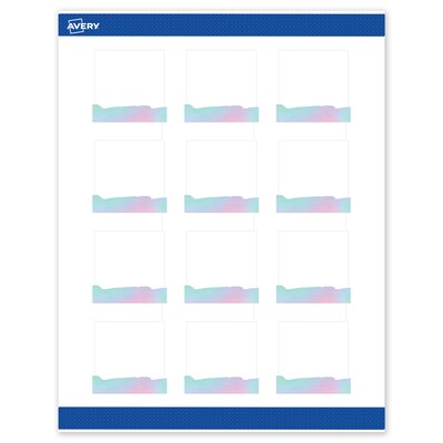 Create a lasting impression with easy-to-customize Avery(R) Labels that feature a stunning, pre-printed design. Elevate your branding or event with Avery(R) Square 2" x 2" Matte White Labels featuring the Iridescent Watercolors design. These premium, printable labels feature a pre-printed border with elegant metallic silver accents, delivering a look no standard printer can match. With a pre-printed design, you can customize the blank space while using less ink. For a cohesive look, pair these labels with other Avery(R) products in the same design collection. Featuring convenient Pop-Up Edge technology for faster peeling, these permanent customizable labels apply smoothly and stay securely in place. The smooth matte white finish delivers clean, versatile results that work beautifully across a range of projects. Built-in Sure Feed technology creates a more reliable feed through your printer to reduce misalignments and printer jams. Easily design and print wax melt labels, wedding favor labels, thank you labels, and more using Avery Presta(R)(R) Template S00-F3N.