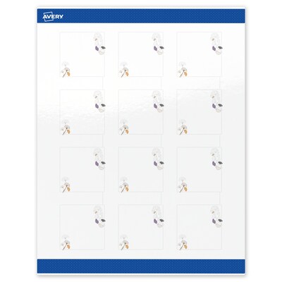 Add an elevated touch to branding and events with Avery(R) Square 2" x 2" Glossy White Labels featuring the Silver Metallic with Gingko Leaves design. Upgrade your business or event with these premium, printable labels that feature a pre-printed border with elegant metallic silver accents, delivering a look no standard printer can match. With a design already pre-printed, you can easily customize the blank space while using less ink—just personalize and print. For a cohesive look, pair these labels with other Avery(R) products in the same design collection. Featuring convenient Pop-Up Edge technology for faster peeling, these permanent customizable labels apply smoothly and stay securely in place. The glossy white finish reflects light for vivid color and detail, creating a premium, polished appearance. Built-in Sure Feed technology helps reduce misalignments and printer jams by creating a more reliable feed through your printer. Compatible with laser and inkjet printers, these labels make it easy to print wax melt labels, wedding favor labels, thank you labels, and more with professional results. Just use Avery(R) Design & Print and search Avery Presta(R) Template S00-F44 to add your own logo, text, and artwork for a personal touch. Enjoy effortless customization with results that look truly professional.