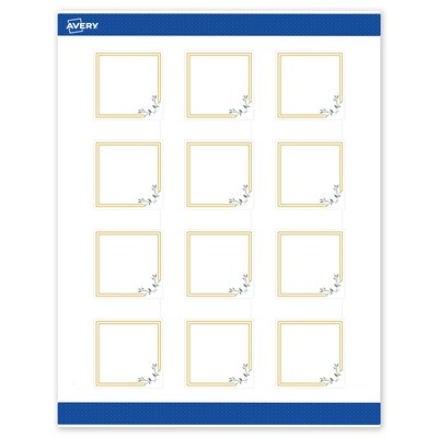 Pre-printed with beautiful designs, Avery Square 2" x 2" Matte White Labels with the Gold Double Border with Florals design help save ink and also elevate your branding and events. Pre-designed and printed with shiny matte gold ink with high-quality printers, these patterns will definitely stand out and are not easily achieved with desktop printers. Mix and match these labels with other Avery cards, tags, and name badges from the same collection that have the same pre-printed design to create a cohesive look. Featuring the helpful Pop-Up Edge technology to help lift and peel labels quickly, these permanent-adhesive labels are great for food labels for containers, logo labels, candle labels, and more. The versatile matte white material is a great solution for any project. Compatible with both laser and inkjet printers, these labels make it a breeze to personalize them with your own information with a desktop printer while still looking professional. Avery premium labels are carefully constructed with beneficial features to provide the best results and allow your brand to stand out. Sure Feed technology reduces printer jams by creating a more reliable feed through your printer. Easily customize gold wedding labels, luxury holiday event labels, premium event labels, festive gold labels, and more with your own logos, text, and designs by searching for the Presta ID S00-DMS and using the templates and tools in Avery Design & Print on the Avery site. Whether you’re a business owner that wants to add more flair to products, an event planner looking to elevate an event, or a teacher looking to step up class projects, Avery labels make it easy to translate your designs into reality.
