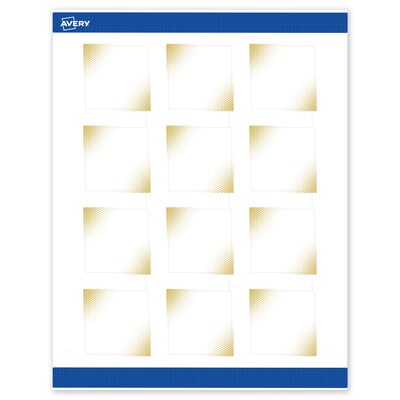 Add an elevated, professional touch to your branding or event with Avery(R) Square 2" x 2" Matte White Labels featuring the Gold Blush design. These premium labels are pre-printed with elegant, metallic gold accents that standard desktop printers simply can't replicate, giving your business or event an instant upgrade. With a design already pre-printed, you can easily customize the blank space while using less ink—just personalize and print. For a cohesive look, pair these labels with other Avery(R) products in the same design collection. Featuring convenient Pop-Up Edge technology for faster peeling, these permanent customizable labels apply smoothly and stay securely in place. The smooth matte white finish delivers clean, versatile results that work beautifully across a wide range of projects. Compatible with laser and inkjet printers, these labels make it easy to print personalized labels with professional results. Built-in Sure Feed(R) technology is designed to provide a more reliable feed through your printer, helping to reduce misalignments, printer jams, and wasted product. Search Avery Presta(R) Template S00-EWA, and use Avery(R) Design & Print to add your own logo, text, and artwork. Our easy-to-use design software lets you add your own personal touch while enjoying the consistency of the stunning, pre-printed design.