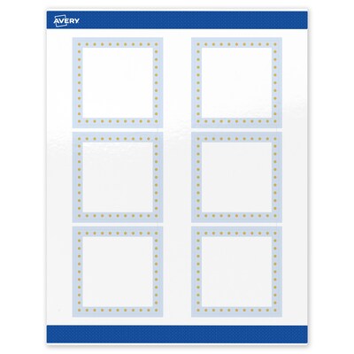 Pre-printed with beautiful designs, Avery Square 3" x 3" Glossy White Labels with the Gold Dots with Blue Border design help save ink and also elevate your branding and events. Pre-designed and printed with shiny matte gold ink with high-quality printers, these patterns will definitely stand out and are not easily achieved with desktop printers. Mix and match these labels with other Avery cards, tags, and name badges from the same collection that have the same pre-printed design to create a cohesive look. Featuring the helpful Pop-Up Edge technology to help lift and peel labels quickly, these permanent-adhesive labels are great for food labels for containers, logo labels, candle labels, and more. Made with a glossy white material, the reflective finish adds a professional, photo-quality look to any project. Compatible with both laser and inkjet printers, these labels make it a breeze to personalize them with your own information with a desktop printer while still looking professional. Avery premium labels are carefully constructed with beneficial features to provide the best results and allow your brand to stand out. Sure Feed technology reduces printer jams by creating a more reliable feed through your printer. Easily customize gold wedding labels, luxury holiday event labels, premium event labels, festive gold labels, and more with your own logos, text, and designs by searching for the Presta ID S00-DMF and using the templates and tools in Avery Design & Print on the Avery site. Whether you’re a business owner that wants to add more flair to products, an event planner looking to elevate an event, or a teacher looking to step up class projects, Avery labels make it easy to translate your designs into reality.