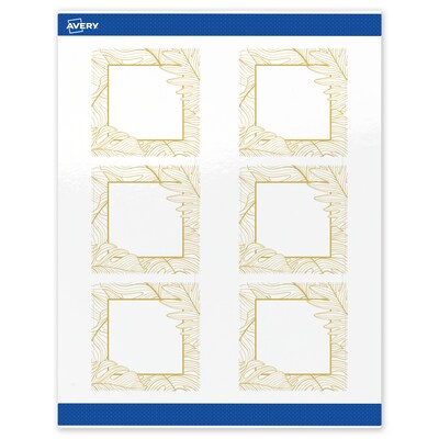 Add an elevated, professional touch to your branding or event with Avery(R) Square 3" x 3" Glossy White Labels featuring the Gold Monstera Leaves design. These premium labels are pre-printed with elegant, metallic gold accents that standard desktop printers simply can't replicate, giving your business or event an instant upgrade. With a design already pre-printed, you can easily customize the blank space while using less ink—just personalize and print. For a cohesive look, pair these labels with other Avery(R) products in the same design collection. Featuring convenient Pop-Up Edge technology for faster peeling, these permanent customizable labels apply smoothly and stay securely in place. The glossy white finish reflects light for vivid color and detail, creating a premium, polished appearance. Compatible with laser and inkjet printers, these labels make it easy to print personalized labels with professional results. Built-in Sure Feed(R) technology is designed to provide a more reliable feed through your printer, helping to reduce misalignments, printer jams, and wasted product. Search Avery Presta(R) Template S00-EW7, and use Avery(R) Design & Print to add your own logo, text, and artwork. Our easy-to-use design software lets you add your own personal touch while enjoying the consistency of the stunning, pre-printed design.