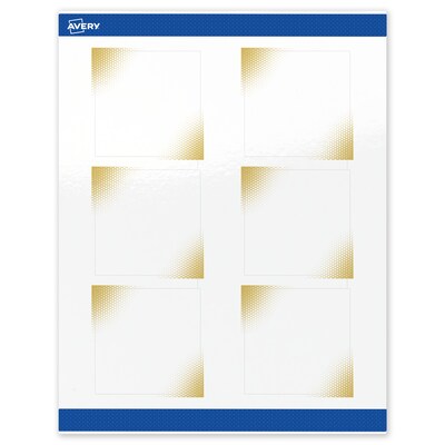 Add an elevated, professional touch to your branding or event with Avery(R) Square 3" x 3" Glossy White Labels featuring the Gold Blush design. These premium labels are pre-printed with elegant, metallic gold accents that standard desktop printers simply can't replicate, giving your business or event an instant upgrade. With a design already pre-printed, you can easily customize the blank space while using less ink—just personalize and print. For a cohesive look, pair these labels with other Avery(R) products in the same design collection. Featuring convenient Pop-Up Edge technology for faster peeling, these permanent customizable labels apply smoothly and stay securely in place. The glossy white finish reflects light for vivid color and detail, creating a premium, polished appearance. Compatible with laser and inkjet printers, these labels make it easy to print personalized labels with professional results. Built-in Sure Feed(R) technology is designed to provide a more reliable feed through your printer, helping to reduce misalignments, printer jams, and wasted product. Search Avery Presta(R) Template S00-EWQ, and use Avery(R) Design & Print to add your own logo, text, and artwork. Our easy-to-use design software lets you add your own personal touch while enjoying the consistency of the stunning, pre-printed design. Try it out on the Avery website today.
